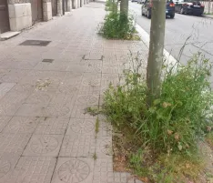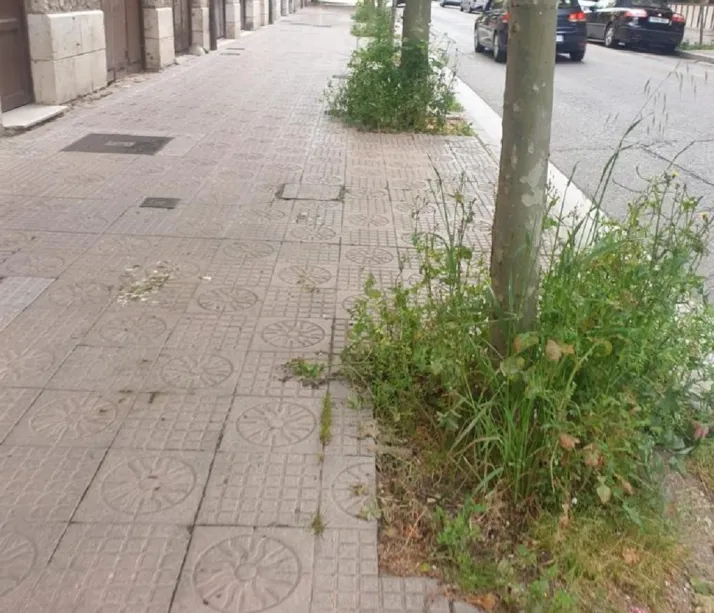 Como muestra la instantánea, las hierbas y maleza que crece junto a los árboles campan a sus anchas y parece que nadie en el Ayuntamiento toma medidas para recortar estas hierbas y adecentar la zona, que más se asemeja a un bosque o a una selva que a una acera de una calle cualquiera de la ciudad.