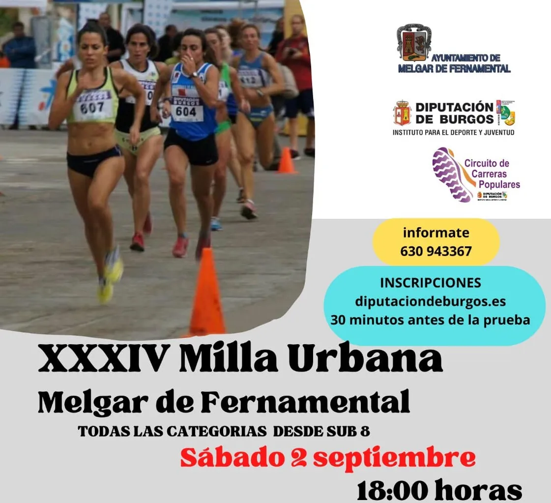 Melgar de Fernamental vuelve a organizar su milla urbana, que se celebra este sábado, 2 de septiembre, a partir de las 18.00 horas. La 34º edición de la carrera, que está incluida en el Circuito de Carreras Populares, contará con 1609m, en tres vueltas, desde la plaza del Cid hasta el recinto ferial.