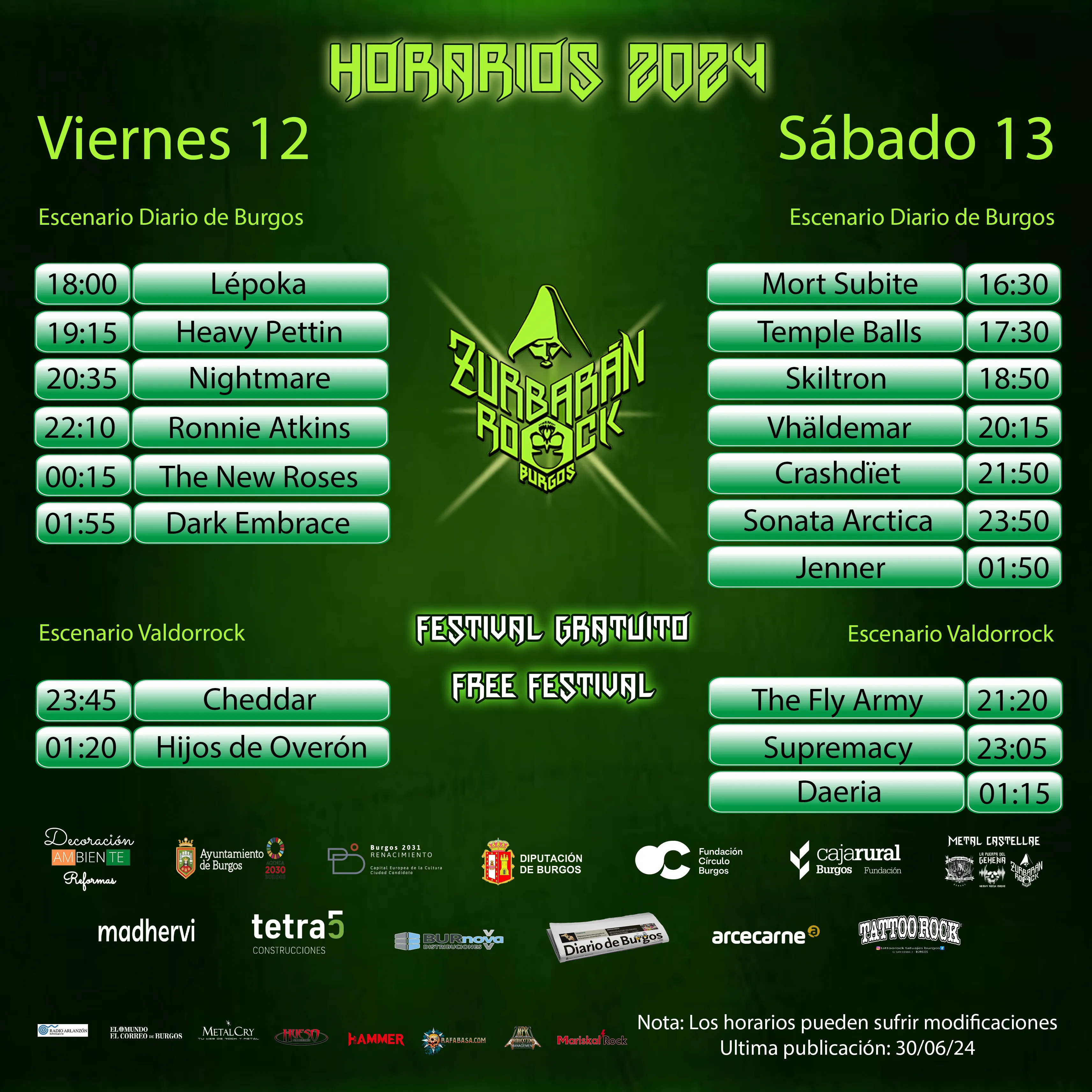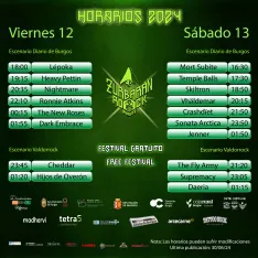 Llegan los horarios de la 7ª edición del festival gratuito Zurbarán Rock Burgos, que tendrá lugar los días 12 y 13 de julio, en el Parque de San Agustín de Burgos.