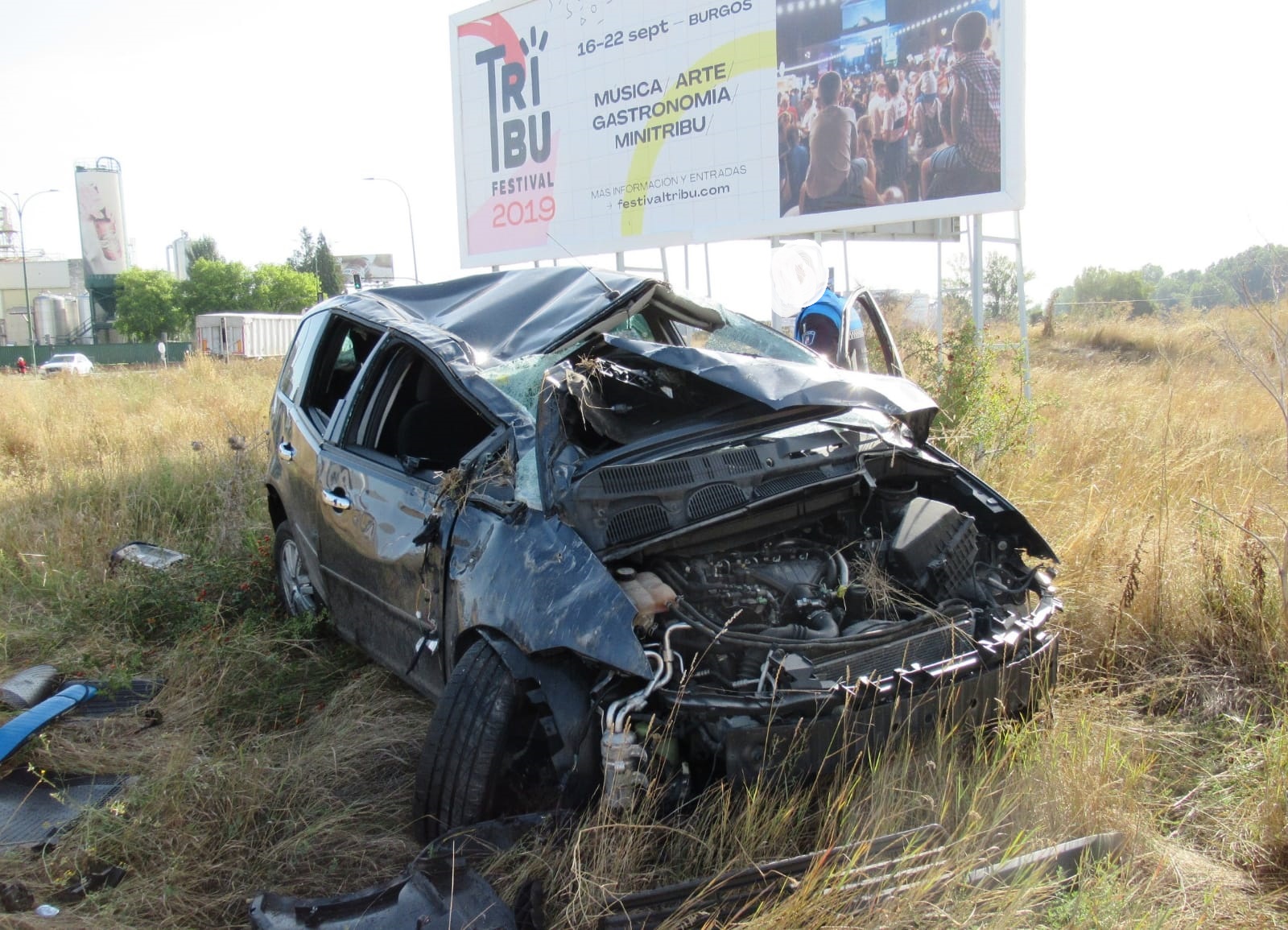 Los servicios del 112 han trasladado al Hospital Universitario de Burgos a un hombre de 48 años tras salirse de la vía en la carretera de Logroño a la altura del polideportivo Carlos Serna.
