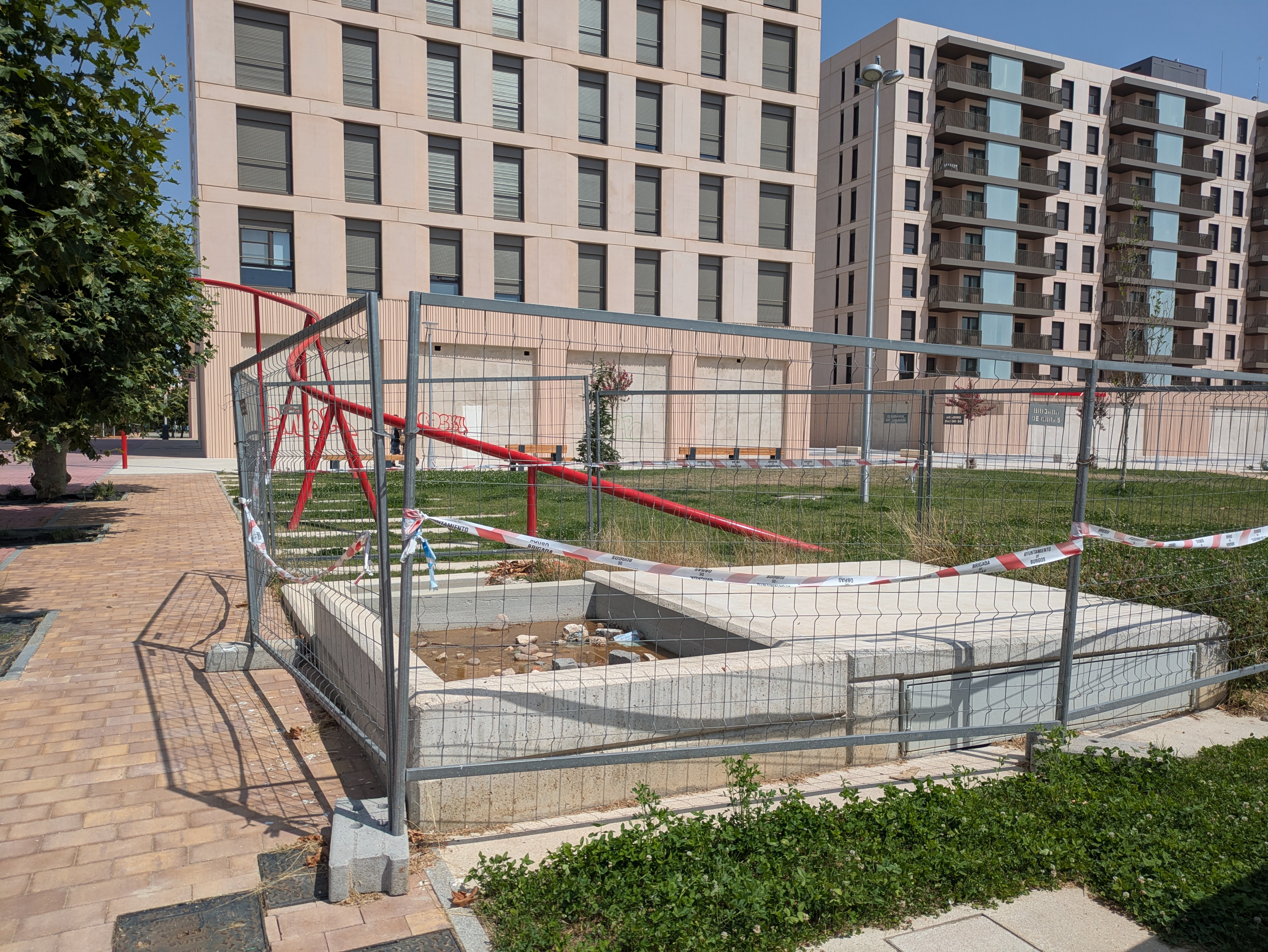 Nuestro lector señala que, pasados ocho meses desde la entrega de la urbanización al Ayuntamiento de Burgos, los responsables del mantenimiento de las fuentes ornamentales siguen sin hacerse cargo de ella. Esto conlleva a que presenten "el lamentable e insalubre estado" que se aprecia en las fotografías