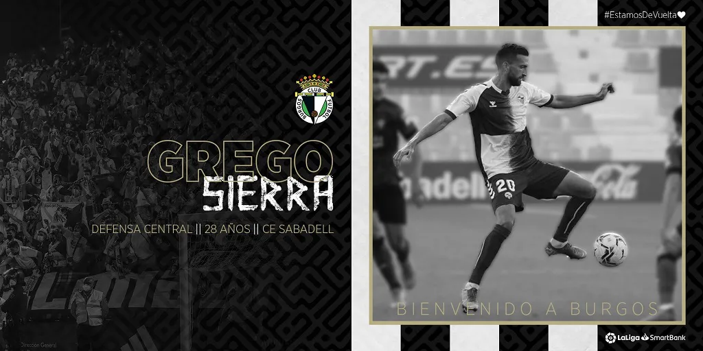 El murciano Grego Sierra llega a El Plantío procedente del CE Sabadell para potenciar la línea defensiva blanquinegra.