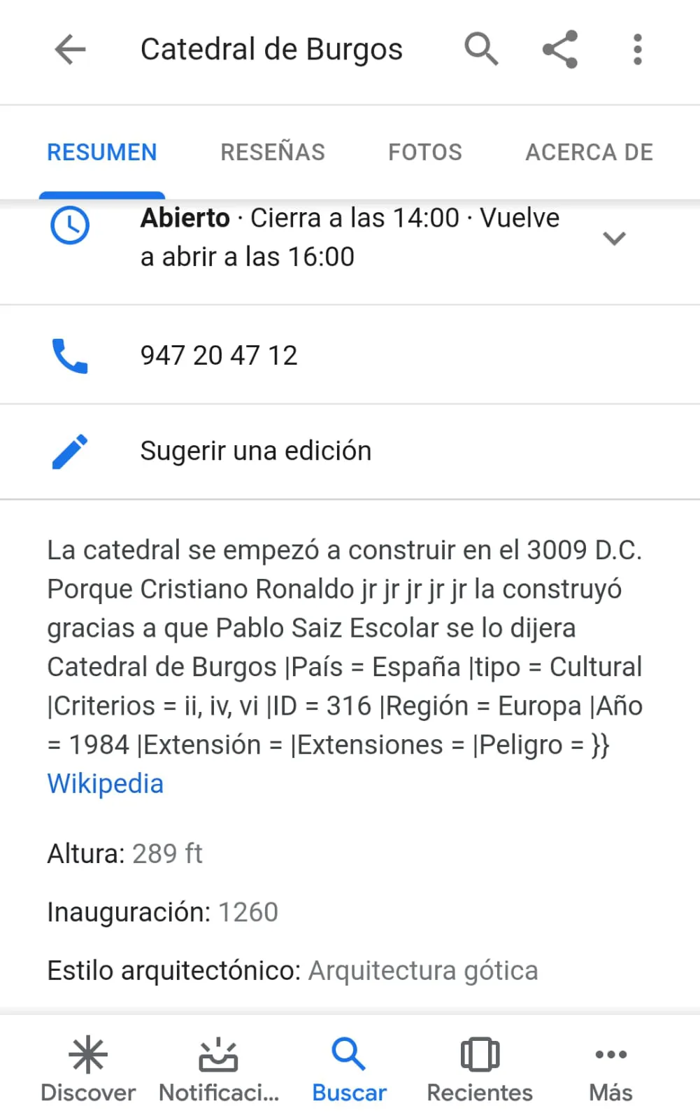 Que una página la pueda modificar cualquiera que tenga unos mínimos conocimientos, tiene inconvenientes. Y eso ha pasado con la página de la Catedral en Google. Un trol se ha colado en la web para hacer de Cristiano Ronaldo un prócer del templo. Bien que sea Cristiano, pero hasta llegar a los límites del supuesto 'hacker' es demasié que diría un castizo.