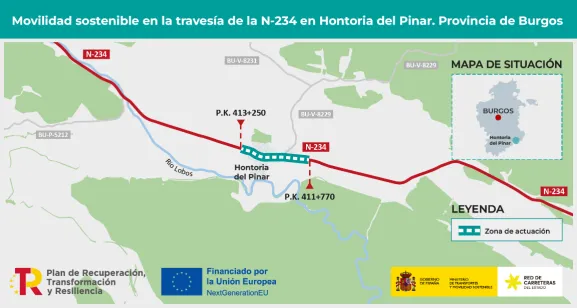 El Ministerio de Transportes y Movilidad Sostenible ha adjudicado un contrato de 3 millones de euros (IVA incluido) para la adecuación de 1,5 kilómetros de la carretera N-234 a su paso por Hontoria del Pinar, en la provincia de Burgos. El objetivo es mejorar la seguridad y accesibilidad de la travesía, fomentando una movilidad más sostenible y reduciendo la contaminación acústica y atmosférica.