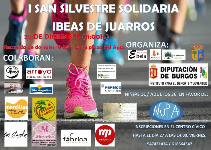 Con los objetivos de promocionar el deporte saludable en la comarca de los Juarros y de fomentar la solidaridad entre sus ciudadanos las asociaciones El Rebollar, ACAHIA, Ebeia y con la participación de la Diputación de Burgos y el Ayuntamiento de Ibeas de Juarros han organizado la I Carrera popular "San Silvestre de Ibeas de Juarros" la cual será benéfica ya que la totalidad de lo recaudado será en beneficio de NUPA (Asociación de Ayuda a niños, adultos y familias con trasplante multivisceral y afectados de fallo intestinal y nutrición parental).