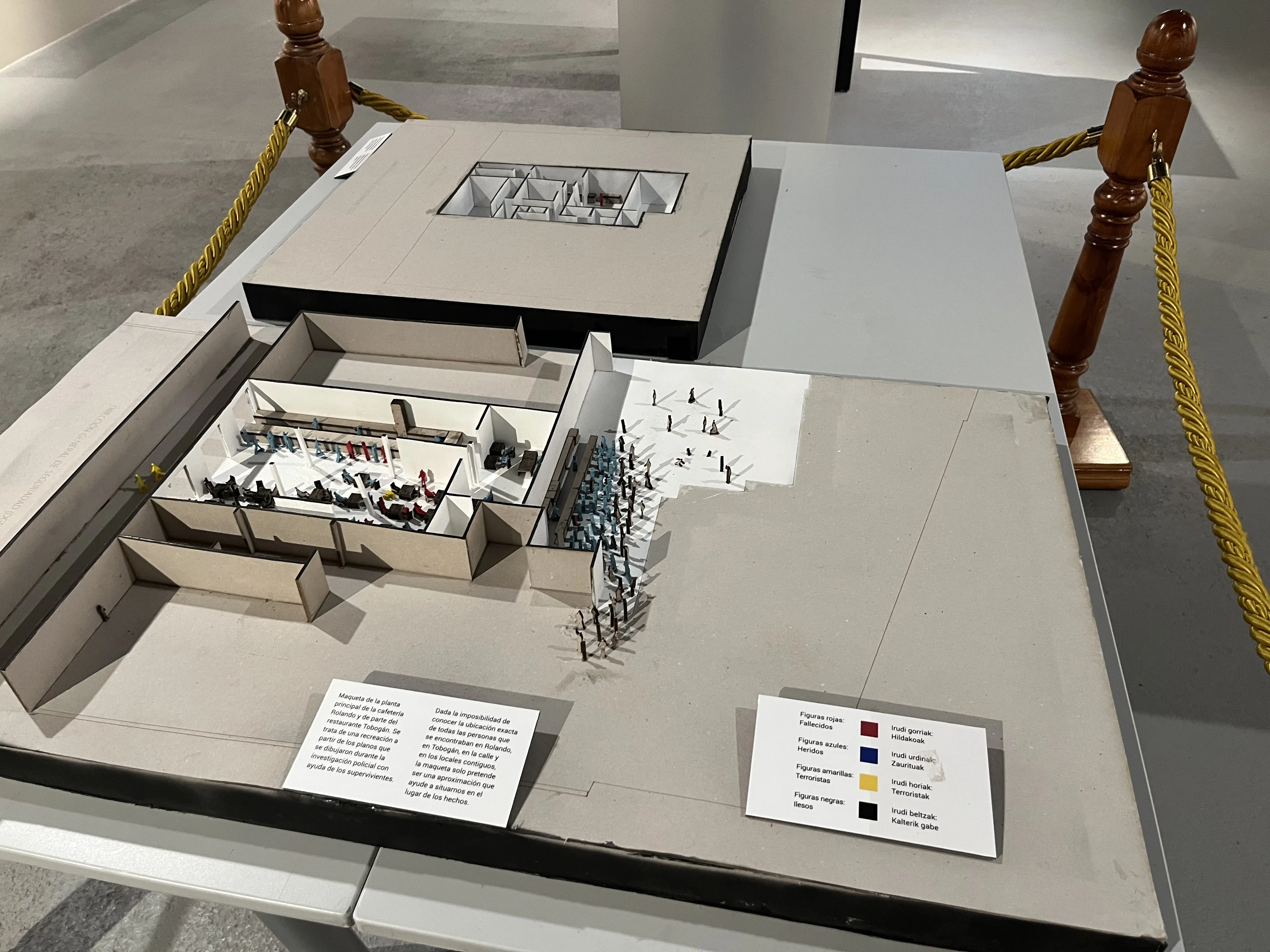 También hay elementos vinculados al comando que perpetró el crimen masivo, como una maqueta de los locales afectados por la explosión, o una reproducción de la maleta-bomba utilizada.