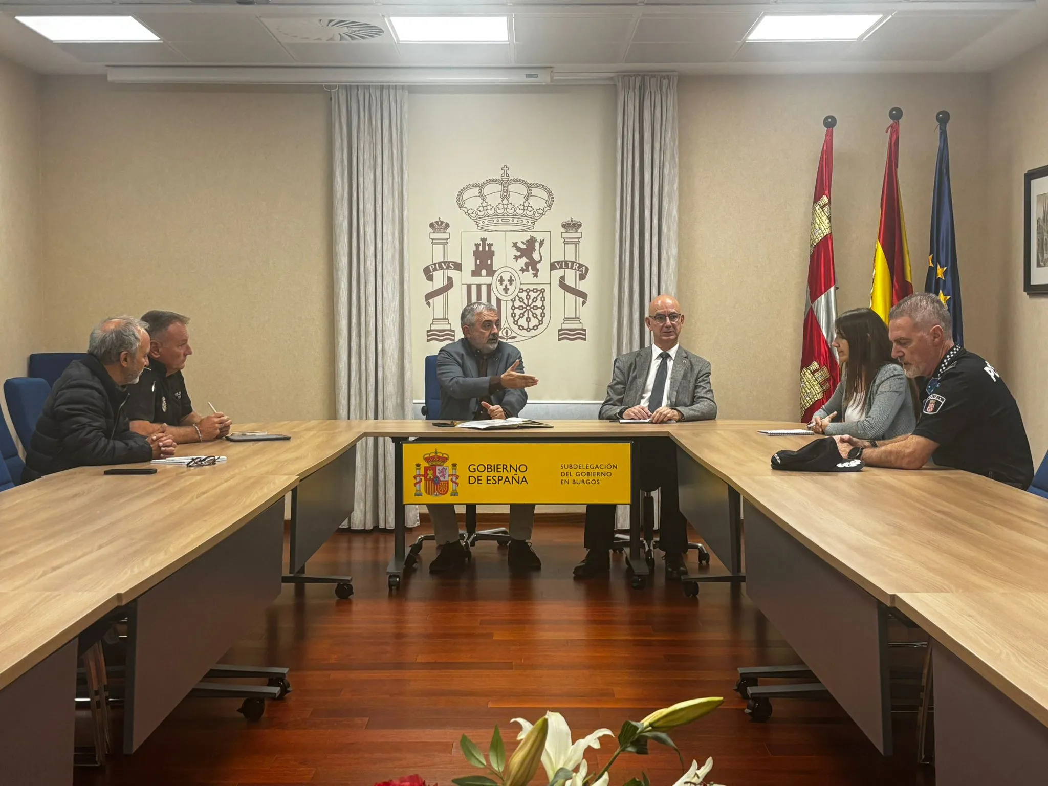 El subdelegado de Gobierno en Burgos, Pedro de la Fuente, se ha reunido esta mañana con el rector de la Universidad de Burgos, José Miguel García, y la vicerrectora de Estudiantes, Sara Gutiérrez, así como el Intendente Jefe de la Policía Local de Burgos, Félix Ángel García, y el jefe de la Brigada de Seguridad Ciudadana de la Policía Nacional, Eloy Ladrón, para coordinar, con motivo del inicio de curso académico, la prevención de novatadas y botellones.