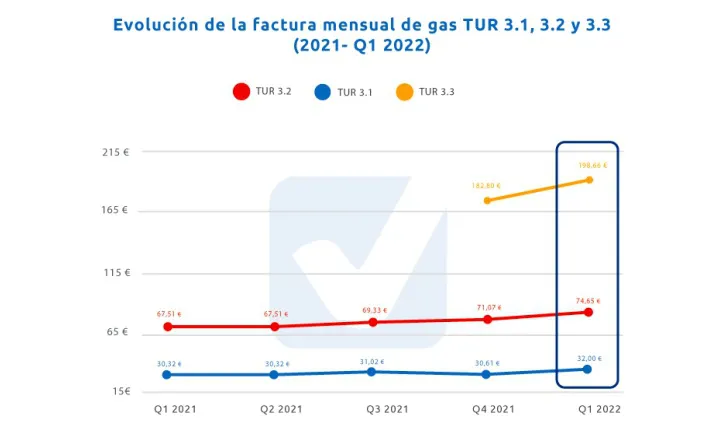 2021 cerró con otra subida de precios en las tarifas TUR, tal como recoge el Boletín Oficial del Estado (BOE) del 25 de diciembre, en el que se aumentaba el precio de consumo de la TUR 1 de los 0,04469 ?/kWh a 0,04862 ?/kWh, de la TUR 2 del 0,04127 ?/kWh a 0,04520 ?/kWh y de la TUR 3 de los 0,3872565 ?/kWh a los 0,04264805 ?/kWh.