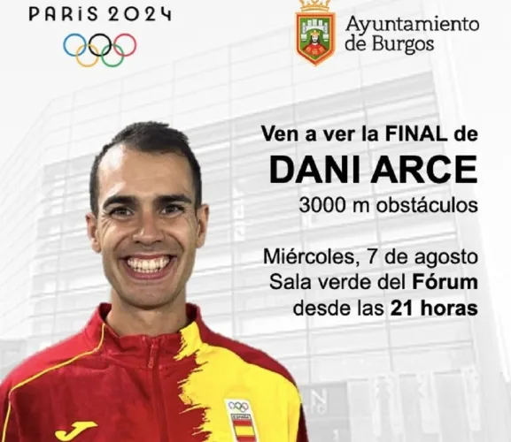 Desde el Consistorio se anima a todos los burgaleses a que acudan al Fórum a las 21.00 h., para ver en directo la prueba, disfrutar al máximo y animar al atleta burgalés que busca conseguir una medalla en su primera final olímpica.