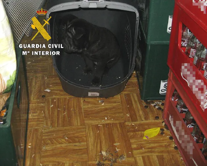 El habitáculo reservado a almacén, además de presentar unas condiciones inapropiadas para la tenencia de animales, con falta de orden y limpieza generalizada, presentaba una deficiente iluminación y ventilación, con excrementos y orines esparcidos en el suelo.
