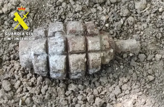 Días atrás, un particular comunicaba a la Guardia Civil el hallazgo casual de lo que parecía ser una granada de mano mientras realizaba labores de limpieza y desbroce en una parcela de su propiedad, en el Valle de Manzanedo; el artilugio apareció semienterrado y debajo de una piedra.