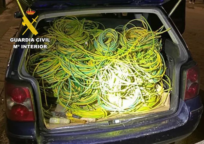 En ésta ocasión sí llamó la atención de los agentes la importante cantidad de cableado eléctrico que transportaban en el maletero, así como varias herramientas manuales; material de cobre del que no supieron dar respuesta coherente sobre su lícito origen y titularidad, por lo que fue intervenido. No obstante, al no tener constancia de ningún ilícito conocido, a los sospechosos se les permitió continuar su ruta.