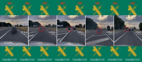 En la secuencia se observaba una peligrosa y temeraria doble maniobra de adelantamiento, que la investigación sitúa en el kilómetro 107'100 de la carretera N-120 (Logroño ? Vigo), próximo a la capital burgalesa.