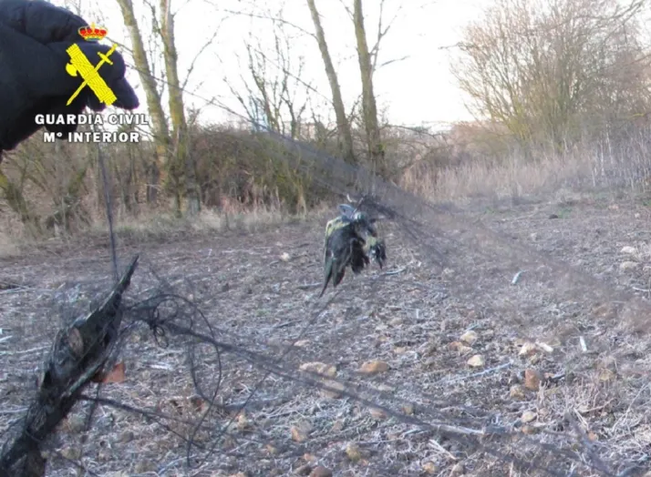 La Guardia Civil ha localizado y retirado de la ribera del Río Vena, a su paso por el barrio de Villafría de la capital, una red japonesa utilizada en el trampeo para la captura de pájaros. Se investiga la autoría.