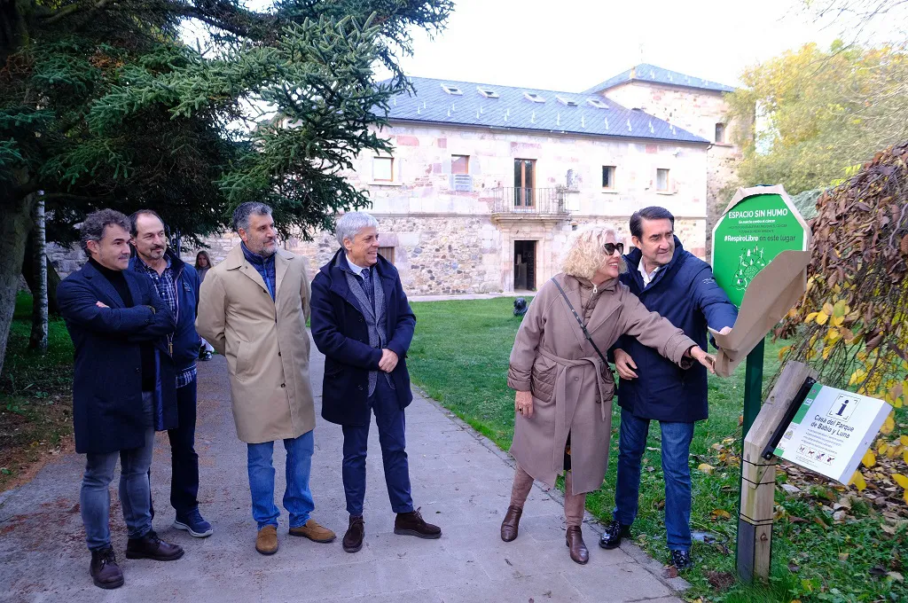 El consejero de Medio Ambiente, Vivienda y Ordenación del Territorio, Juan Carlos Suárez-Quiñones, acompañado de representantes de la Asociación Española contra el Cáncer (AECC), ha visitado la Casa del Parque de Babia y Luna en la que se ha implantado la señal del proyecto 'Espacios sin humo', destinado a colaborar en la promoción de la salud en los espacios naturales de Castilla y León y otros equipamientos en la naturaleza.