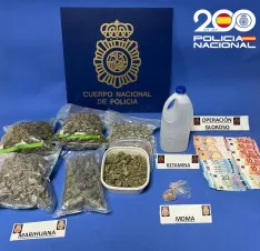 La Policía Nacional de Burgos continúa con su lucha contra el tráfico de drogas. En este caso, la denominada operación 'Glokoso' ha permitido incautar unos dos litros de "ketamina", una de las mayores cantidades de esta potente y peligrosa sustancia intervenida por la Policía Nacional de Burgos hasta la fecha. También se han aprehendido 1,2 kilogramos de marihuana, unos 23 gramos de MDMA (cristal) y 625 euros en efectivo.