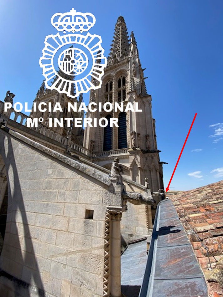 El pasado día 23 de julio policías de la Comisaría Provincial Burgos se desplazaron hasta la Catedral de Burgos para acceder a una terraza situada entre una emblemática Capilla y la Torre Norte, donde al parecer se había estrellado un dron.