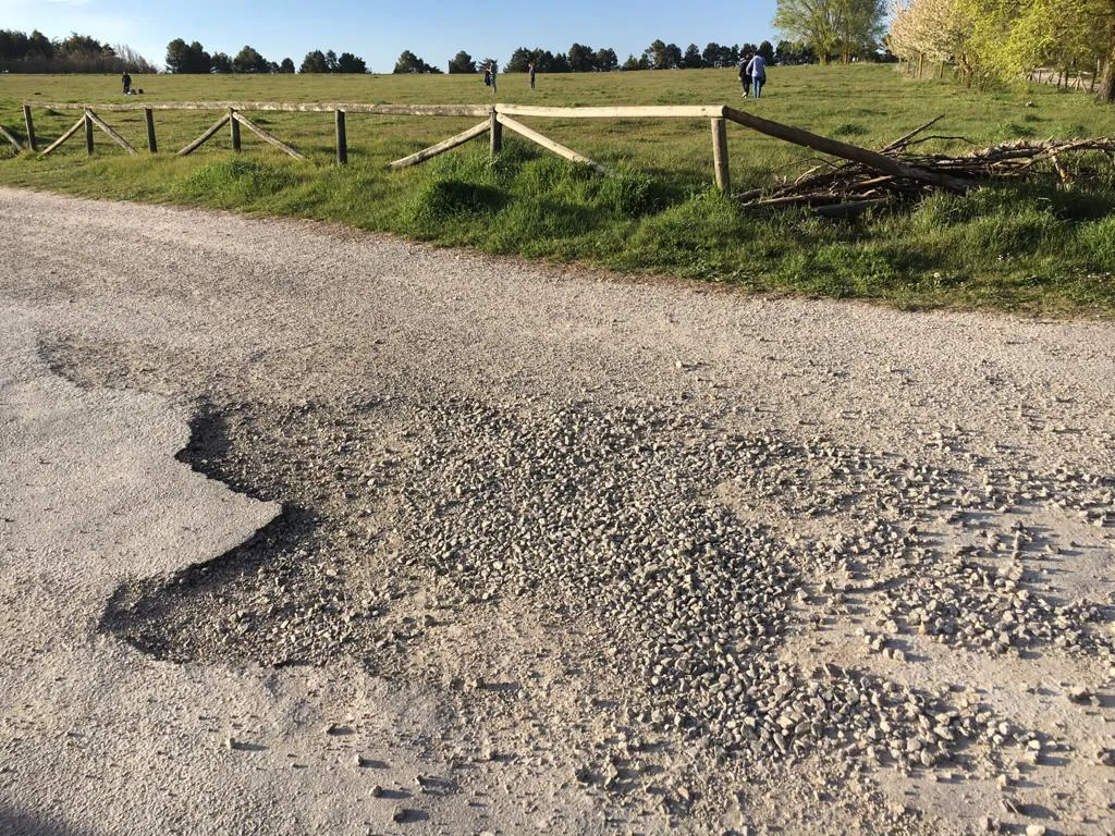 En este caso también se refieren a la subida del cerro de San Miguel, pero hacen referencia al estado de la vía, que presenta claros síntomas de desgaste, con el asfalto erosionado y convertido en piedras, sin una intención, "parece ser" de reparar "en algún momento" las evidentes cadencias que tiene esta zona de la ciudad. Tal y como denuncia nuestro lector, esto supone un peligro para los conductores, ya que pueden resbalar con la gravilla, y para los ciclistas, que podrían perder estabilidad si se "topan" con este socavón.