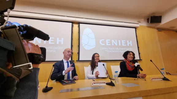 María Martinón Torres, directora del Centro Nacional de Investigación sobre la Evolución Humana (CENIEH) y José Miguel García Pérez, rector de la Universidad de Burgos (UBU), han presentado esta mañana un acuerdo de colaboración para la creación y desarrollo de un grupo de investigación transversal UBU-CENIEH de Arqueología Molecular. La investigadora de la UBU Cristina Valdiosera Morales, arqueóloga molecular experta en ADN antiguo será la encargada de coordinar este grupo transversal