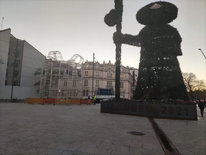 Ahora, con la llegada de la Navidad, el Ayuntamiento ha vuelto a instalar en el Paseo Sierra de Atapuerca el paquete de regalo de luces. Junto al peregrino. Y las redes han vuelto a enloquecer porque "ya no cabe más" o "Ánimo. Si lo juntamos todo un poco aún caben más cosas". La acera más cercana al Fórum se ha llenado de esculturas y poco espacio dejan para el libre tránsito de los peatones, que a un lado tienen el carril bici y al otro, estas dos figuras.