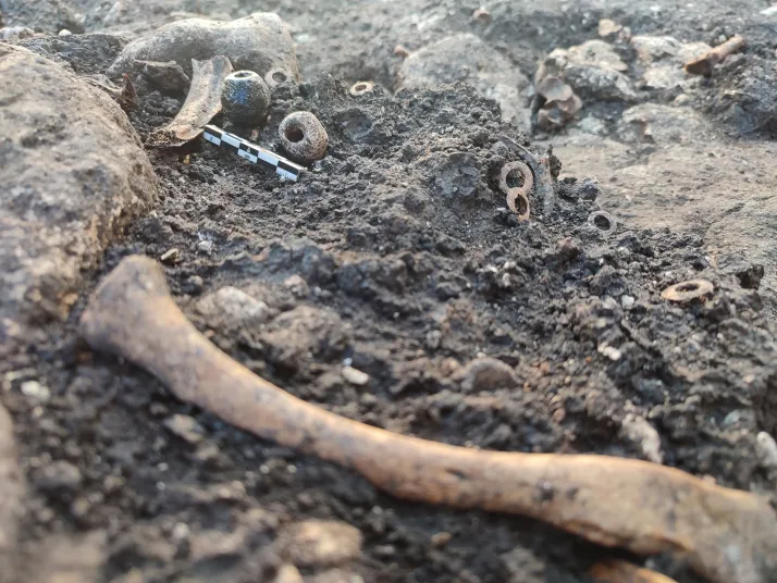 En esta campaña se han excavado y documentado los niveles de ocupación inferiores del corredor, donde se encontraba la fosa colmatada por piedras y tierra que se localizó a finales de la campaña de 2021. Asimismo, en la cámara se ha finalizado la excavación del nivel inferior del osario, en el que se han recuperado numerosos elementos de ajuar que acompañaban a los muertos, sobre todo cuentas de collar realizadas sobre diferentes materiales como lignito, hueso, piedras de coloración verde y coral colonial.