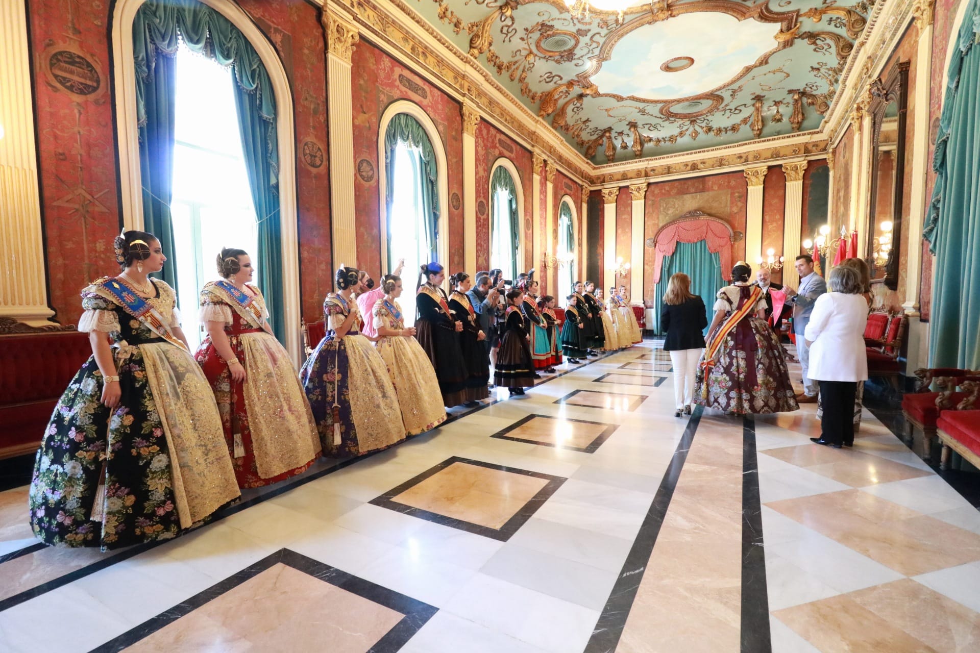 Cerca de las 12:30 horas de este martes 28 de junio han llegado las falleras de Valencia a la ciudad de Burgos para celebrar con los burgaleses las fiestas de San Pedro y San Pablo.