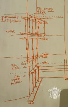 Según relata el propio Cuerpo, "intervenimos debido a un forjado parcialmente cedido entre el segundo y tercer piso". Su actuación se centró en "trasmitir al terreno la carga del forjado en suspensión, apeamos mediante líneas de puntales trasversales a las vigas hasta cota cero".