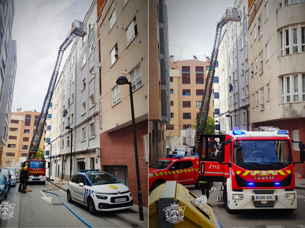 Esta tarde los bomberos de la ciudad de Burgos han tenido que desplazarse hasta la calle Roa, tras declararse un incendio en una de sus viviendas. El Servicio Municipal de Extinción de Fuegos ha entrado al domiclio por la fachada del edificio, ya que la puerta de acceso estaba cerrada.