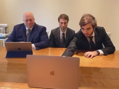 Esta vez no hubo problemas de conexión con el notario, Julián Martínez Pantoja, que tomó nota de todo lo que la reunión fue desgranando, que no fue mucho, pero sí lo suficiente para llevar a cabo el traspaso de poderes de la familia Caselli, al grupo de empresarios burgaleses que a partir de ahora toman el timón de la nave blanquinegra.