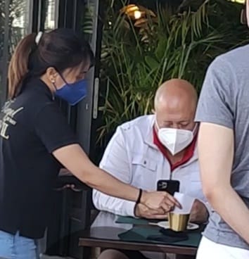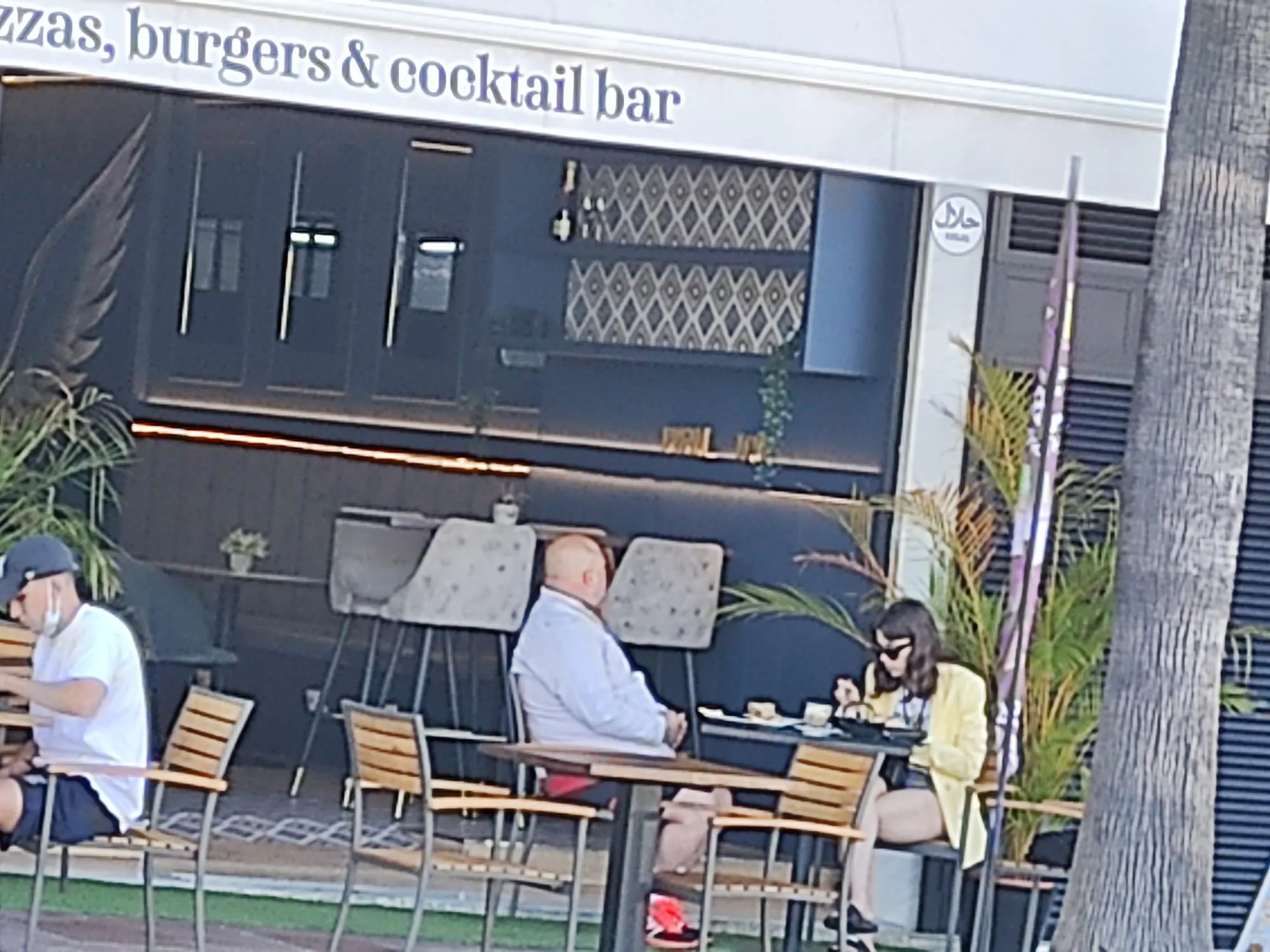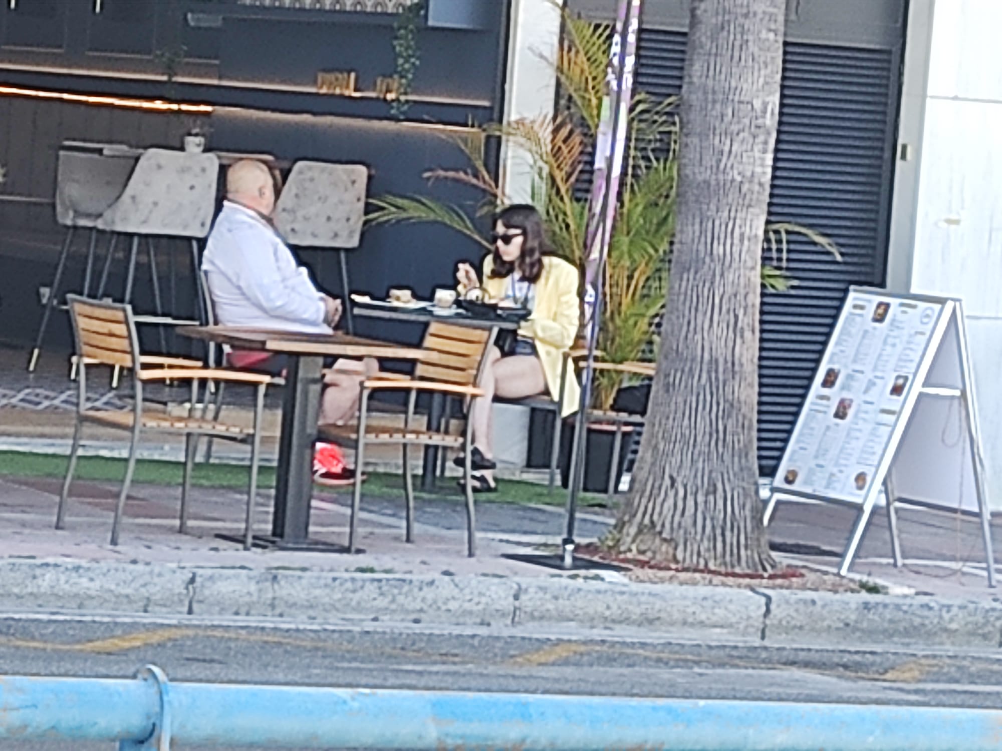 Las fotografías que acompañan esta noticia han sido tomadas a las 11 horas de este mismo domingo, 27 de junio. En ellas se puede ver a la familia Caselli en una cafetería de la plaza Antonio Banderas.