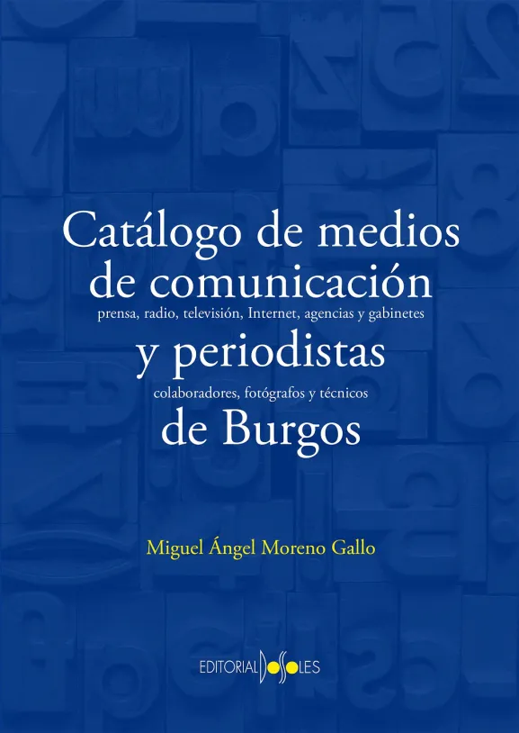 ESTRUCTURA DE LA OBRAEl libro, de 442 páginas, comienza con una introducción que contextualiza e indica las características de la publicación, así como algunos aspectos técnicos para la consulta eficaz. A continuación, aparece el catálogo de medios de comunicación por orden alfabético, con expresión del título, lugar de edición (Burgos o localidades de la provincia), fecha en la que se publicó o emitió (medios audiovisuales), repositorios oficiales en los que se pueden consultar los ejemplares físicos y un resumen de la empresa editora o las características históricas. Cuando se ha considerado pertinente, el resumen es un poco más amplio, aunque siempre se ha buscado la brevedad. Asimismo, se indican las referencias bibliográficas de otros autores que han escrito sobre cada uno de los medios de comunicación. Cuando ha sido posible, se incluye una relación de los periodistas y técnicos que han trabajado en cada medio. A continuación, se inserta un listado de todos los medios de comunicación ordenados por fecha de aparición, y un segundo listado de los medios por localidades de edición.