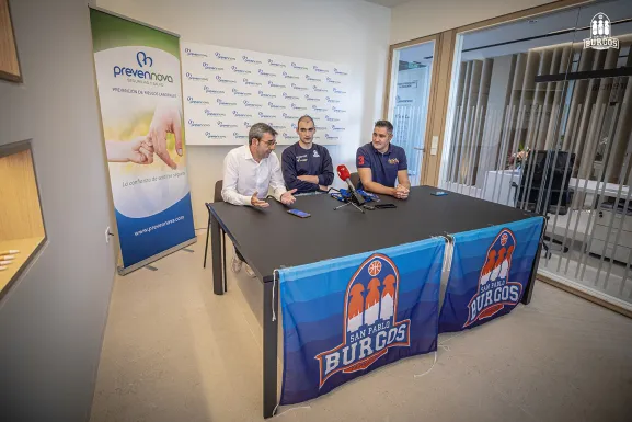 El alero del San Pablo Burgos, Millán Jiménez, jugador cedido por Valencia Basket, ha comparecido este lunes ante los medios de comunicación en su presentación en las instalaciones de Prevennova Seguridad y Salud. El calagurritano ha estado acompañado por el director deportivo y gerente del club, Albano Martínez, y el director ejecutivo de Prevennova, Luis Sánchez Susinos.