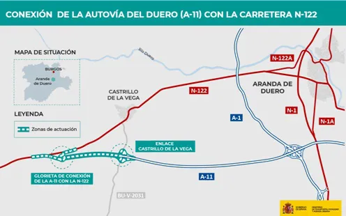 El Ministerio de Transportes, Movilidad y Agenda Urbana (Mitma) ha formalizado, por importe de 15,75 millones de euros, el contrato de obras "Autovía del Duero (A-11). Conexión de la autovía con la carretera N-122 en las proximidades de Castrillo de la Vega", en la provincia de Burgos, tal y como anuncia hoy en el Boletín Oficial del Estado (BOE).