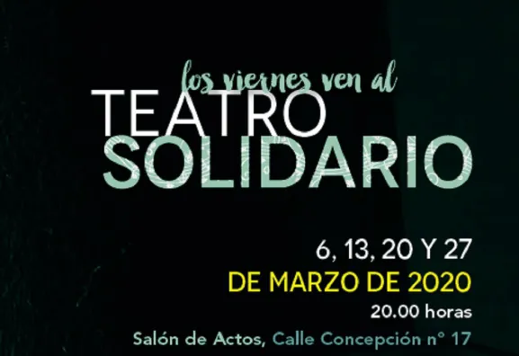 El programa propuesto para esta nueva edición de Teatro Solidario consta de 4 actuaciones que se celebrarán los viernes 6, 13, 20 y 27 del mes de marzo, a las 20:00 horas, en el Salón-Teatro de Fundación Cajacírculo de la C/ Concepción nº 17. El precio de cada una de estas representaciones solidarias es de 5 euros, y la adquisición de las entradas podrá realizarse en diversos puntos de venta elegidos por las Asociaciones, y una hora antes del comienzo del espectáculo en la taquilla del Teatro.