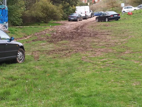 La ladera del Castillo está acogiendo en los últimos días un aparcamiento improvisado en la ladera del Castillo, fruto quizá de las fiestas mayores de la ciudad y de la falta de aparcamiento en zonas céntricas (o por falta de ganas de pagar por un parking en condiciones). El caso es que esta recepción desordenada de coches afea el entorno y lo estropea, levantando el césped y dejando un reguero de tierra y barro que menoscaba la imagen de esta parte de la ciudad.
