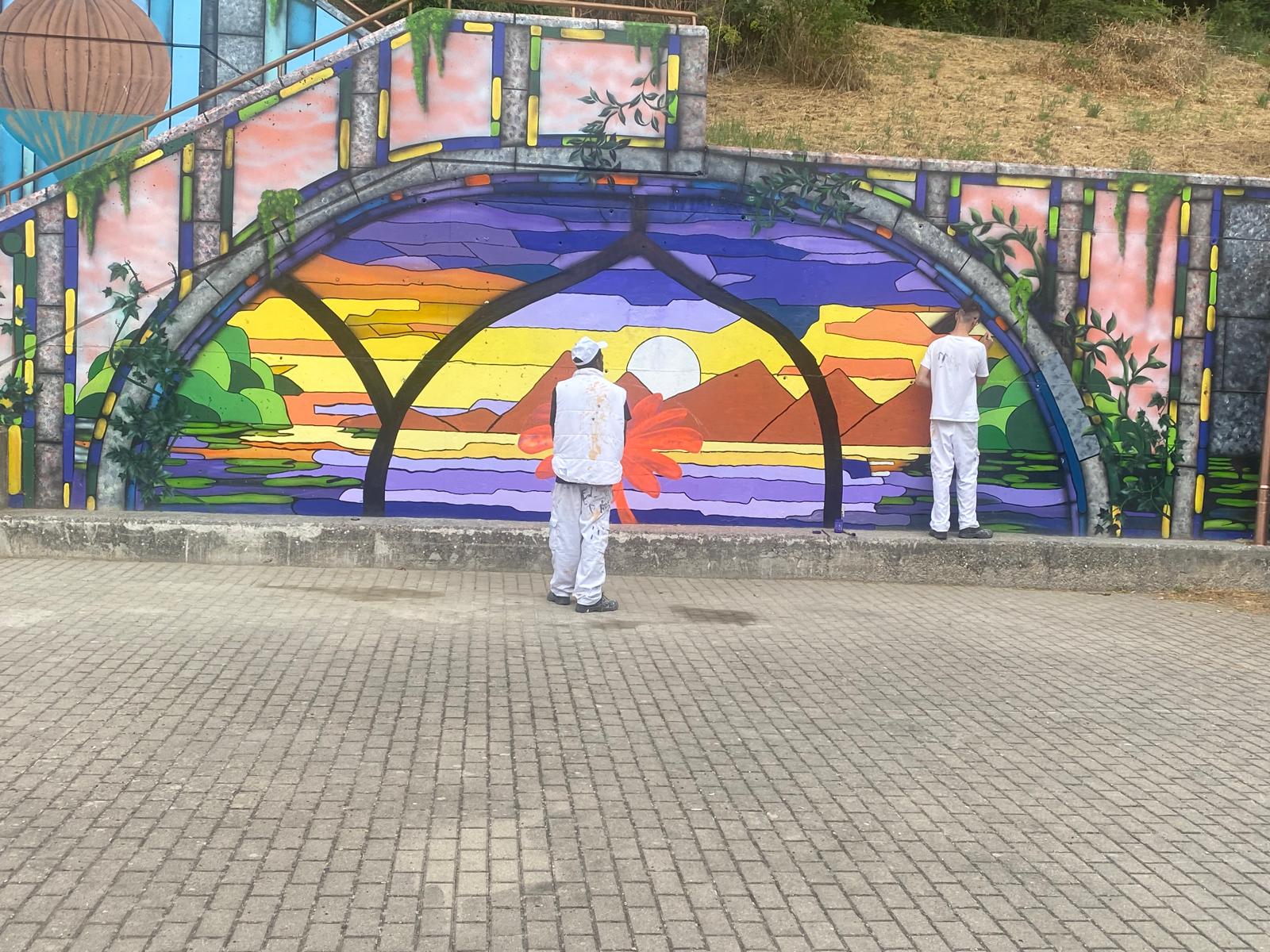 La escuela taller del Ayuntamiento de Burgos, en su especialidad de pintura, está realizando algunos nuevos murales para la ciudad de Burgos