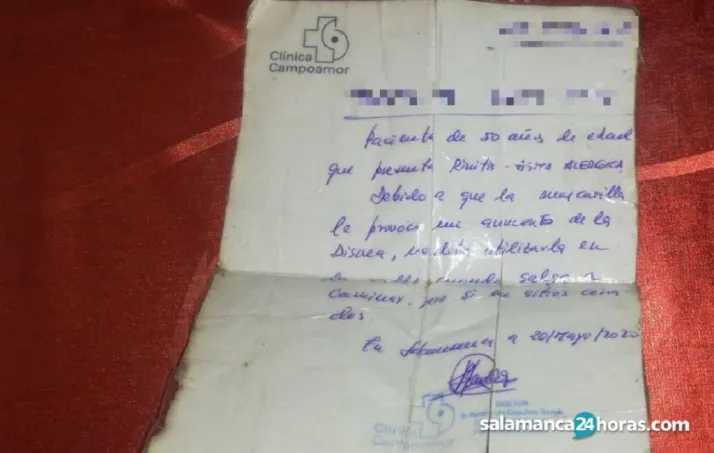Tal y como afirma a SALAMANCA24HORAS.COM, esta afección del sistema respiratorio le impide respirar con normalidad si usa la mascarilla pudiendo incluso llegar a marearse.
