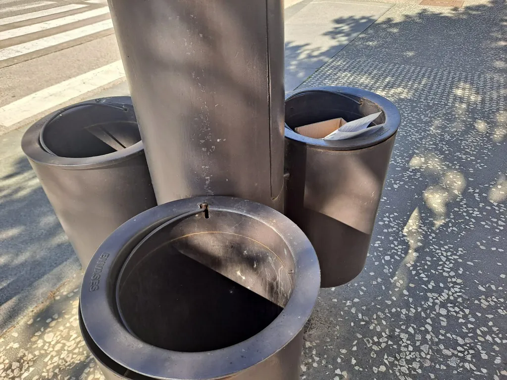 Uno de los lectores de este digital nos hace llegar unas fotografías de unos papeleras-recipientes situados en el Bulevar, junto al Centro Cultural del Crucero.