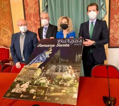 La concejala de Festejos, Blanca Carpintero, acompañada por Saturnino López, abad de la Semana Santa de Burgos, Luis Manuel Isasi y Jaime Prado, presidente y vicepresidente y portavoz de la Junta de Semana Santa de Burgos, respectivamente, ha presentado el programa de este año 2022, que contará con la participación de las 16 cofradías de la ciudad.