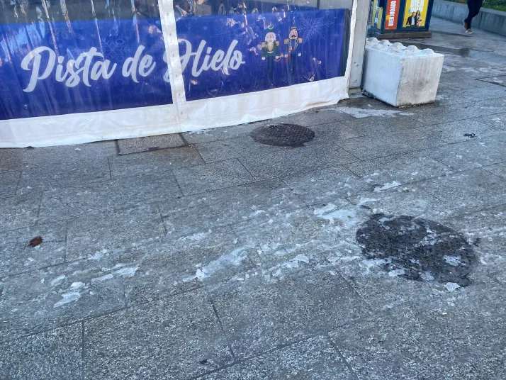 Los burgaleses afectados por estas desafortunadas caídas piden a la pista de hielo que corrija la situación y al Ayuntamiento que tome las correspondientes medidas sancionadoras y se actúe sobre esta zona próxima a la atracción que entraña un más que considerable riesgo "de patinaje".