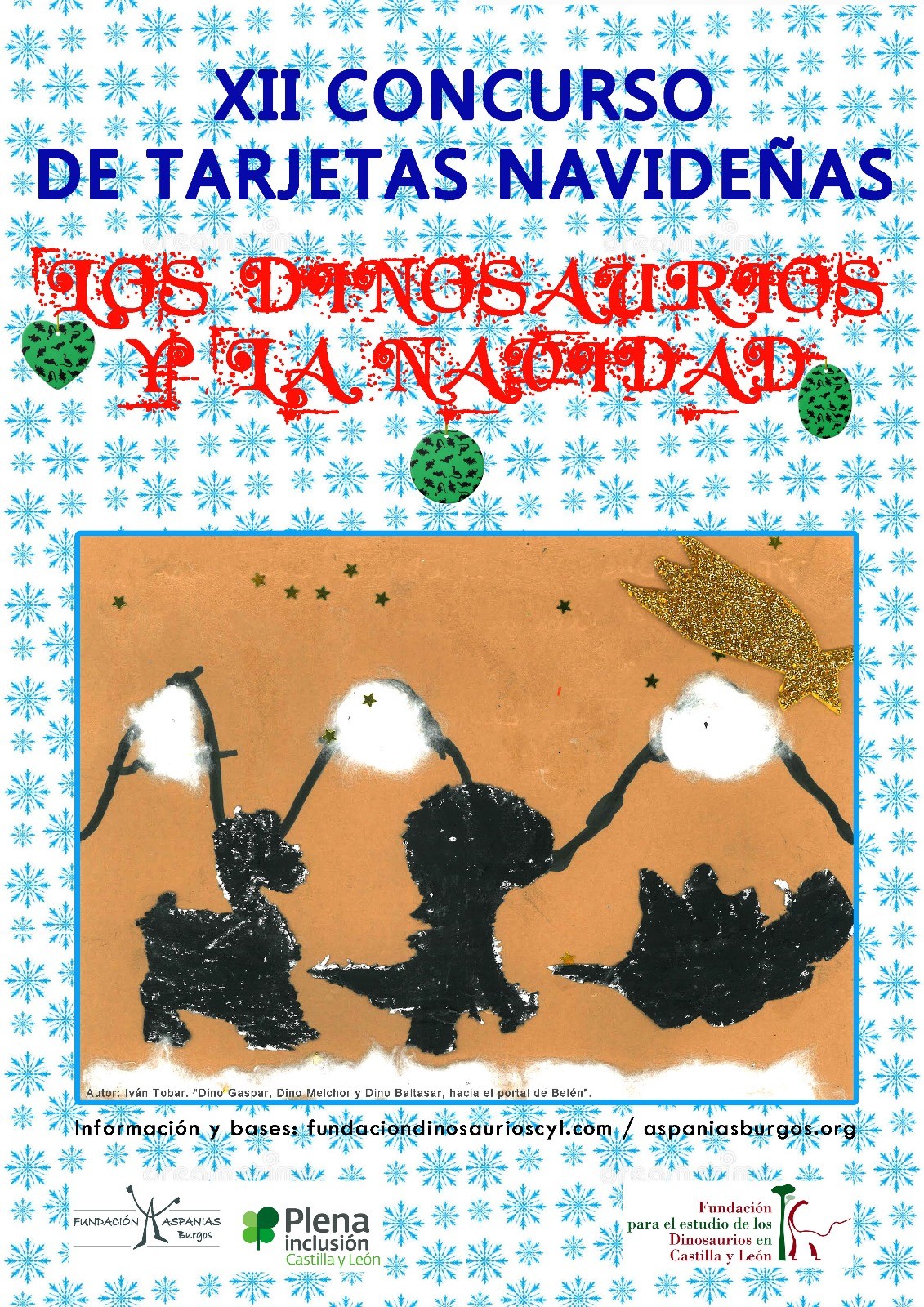 Con el objetivo de potenciar, animar y estimular la capacidad creativa y el talento artístico de las personas con discapacidad intelectual, la Fundación Aspanias Burgos Plena Inclusión Castilla y León y la Fundación para el Estudio de los Dinosaurios en Castilla y León convocan el Concurso de Tarjetas Navideñas "Los Dinosaurios y la Navidad". El certamen llega ya a duodécima edición y está dirigido a las personas con discapacidad intelectual o del desarrollo. Su propósito es hacer visible y premiar la capacidad creativa de estas personas en el campo de la pintura o el dibujo, uniendo dos mundos sin conexión aparente como son los dinosaurios y la Navidad. Un interesante reto creativo a las puertas de la Navidad.