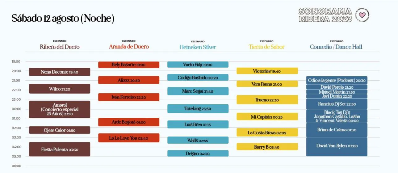 Sonorama Ribera ha dado a conocer hoy sus horarios para que los que tuvieron suerte de conseguir su bono puedan organizarse para poder ver a sus grupos favoritos. Los horarios se pueden consultar en la web de Sonorama Ribera.
