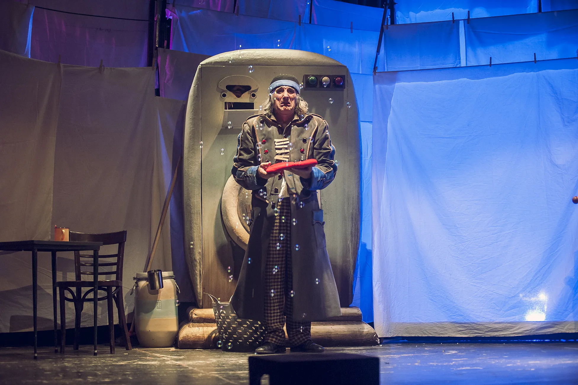 El montaje de la Compañía La Tal se centra en un operario de lavandería que vive y sueña entre sábanas.