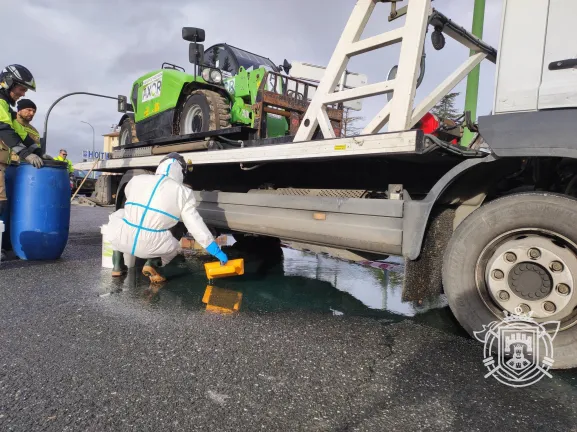 De este modo, los bomberos han tenido que contener el derrame y recoger el vertido en unos trabajos en los que ha colaborado la empresa de limpieza Urbaser, Conservación de carreteras y la Policía Local de Burgos.