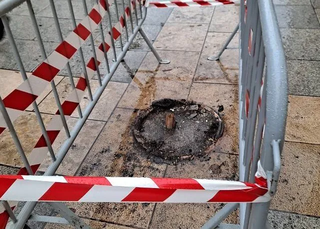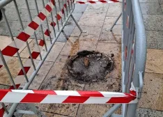 Tras retirar este elemento lumínico de la vía pública y retirar los pedazos de cristal, han vallado el espacio donde se encuentra ahora el foso indicador, para evitar tropezones y caídas.