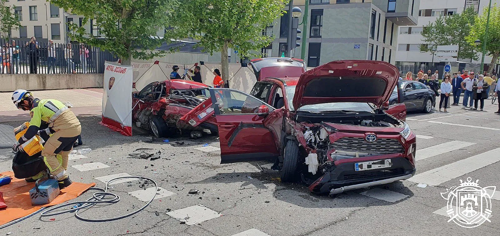 Un espectacular accidente en cadena deja seis heridos al colisionar tres turismos en la avenida de Cantabria con Reyes Católicos