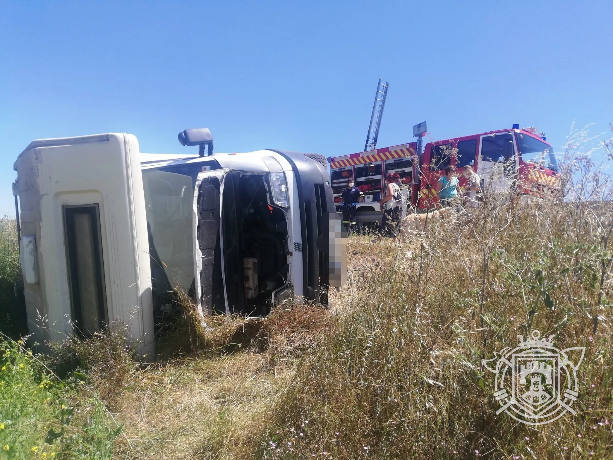 Los Bomberos de Burgos se han desplazado hasta la AP-1 punto kilométrico 11 en la localidad de Rubena para extraer a dos personas que han quedado en el interior de una autocaravana después de que esta se saliera de la vía.