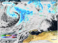 El jueves ya se acercará al noroeste peninsular la nueva borrasca fría aislada (BFA) que podría ser de alto impacto, formada al sur de Groenlandia. Asociado a esta depresión, un frente atlántico dejará lluvias en zonas del extremo norte, que serán más intensas en Galicia, Asturias y el noroeste de Castilla y León. También nevadas en la Cordillera Cantábrica y los Pirineos. Las temperaturas descenderán en la vertiente atlántica, especialmente por el noroeste de la Península.