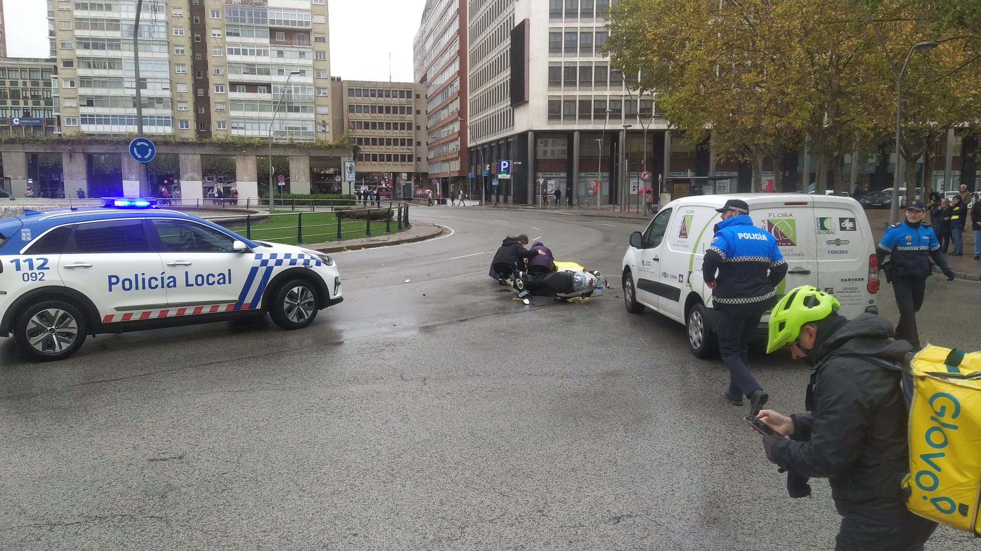 El sonado accidente ha dejado a la usuaria de la moto, también repartidora de una empresa de reparto a domicilio, en el suelo. Según relatan testigos del suceso, se encuentra consciente, pero a la espera de los servicios médicos.