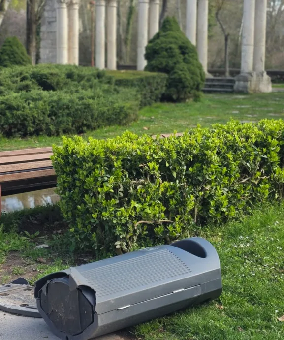 La redacción de Radio Arlanzón ha recibido esta foto, donde se puede observar el estado inservible de esta papelera en pleno Paseo de la Isla.